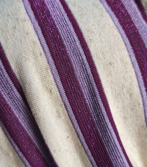 Farbe: beigegrundig mit lilafarbenen Streifen und etwas Glitzer