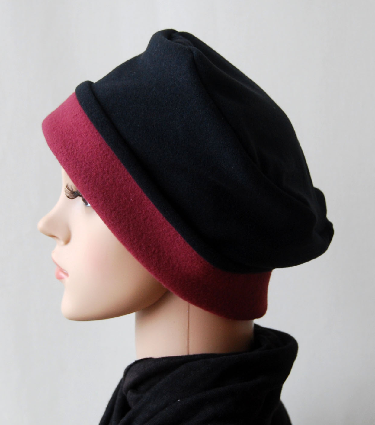 Warme Mütze für den Winter in der Kombination aus Fleece in bordeaux und anthrazit. Die Mütze ist nicht wendbar. Sollten Sie dieses bevorzugen, sehen Sie sich bitte das Modell special an.