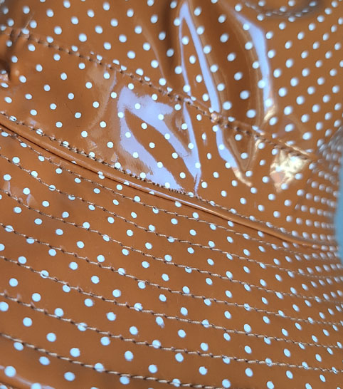 Regenhut in terracotta mit kleinen weißen Pünktchen.