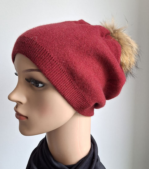 Strickmütze dunkelrot, mit Kaschmir und Angora