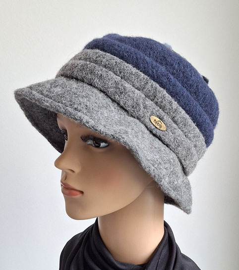 Wollhut grau mit blau