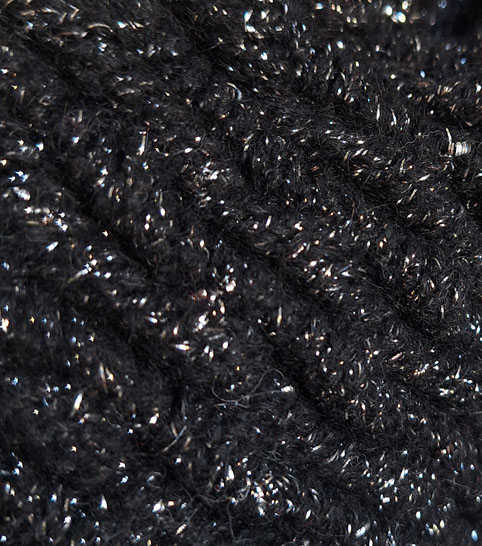 Strickbeanie mit eingestricktem Lurexfaden, glitzert.