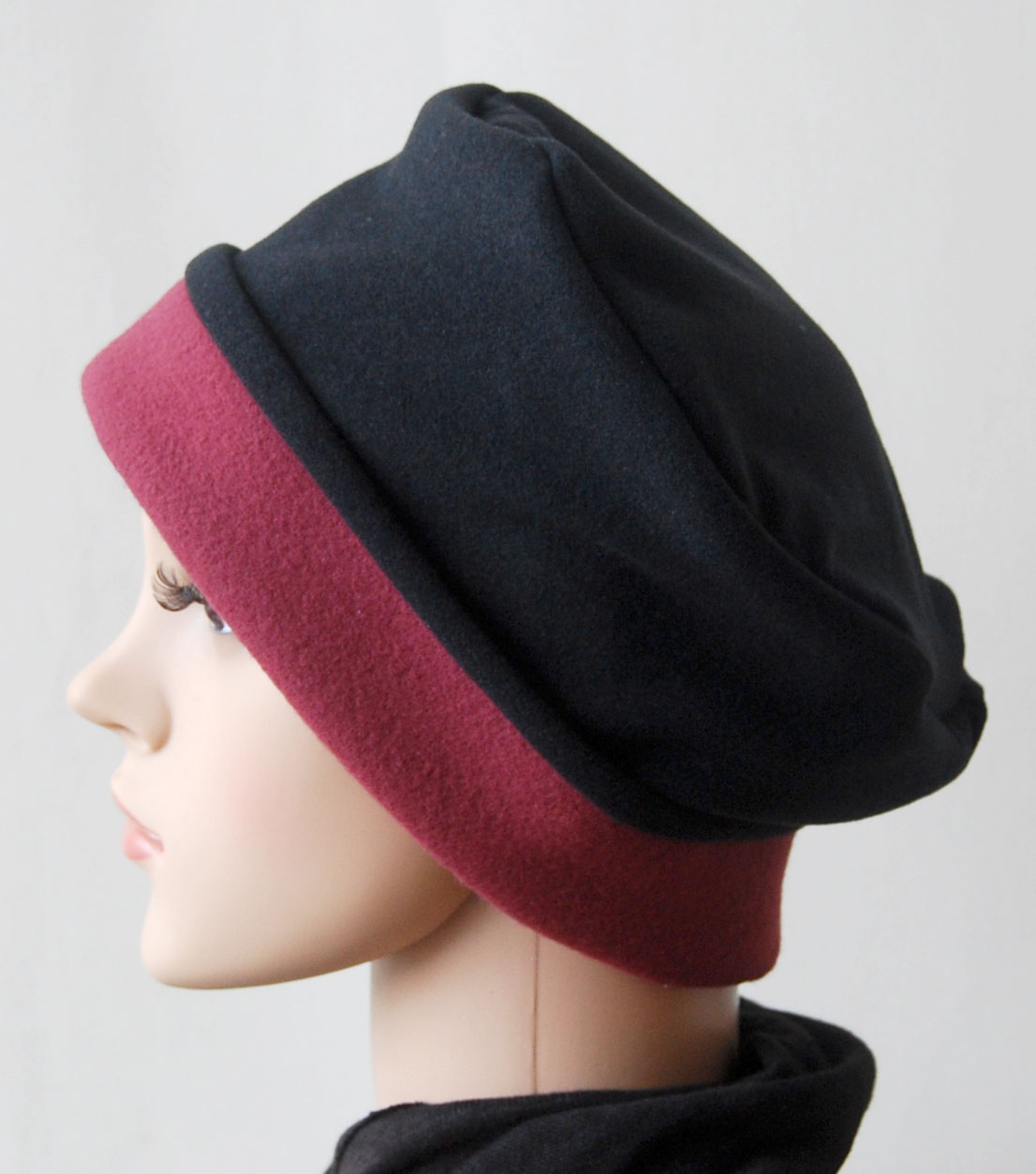 Warme Mütze für den Winter in der Kombination aus Fleece in bordeaux und anthrazit. Die Mütze ist nicht wendbar. Sollten Sie dieses bevorzugen, sehen Sie sich bitte das Modell special an.