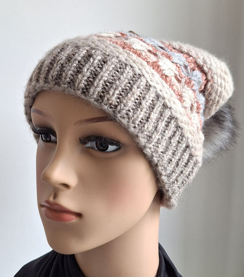 Strickpudelmütze, schön warm mit attraktivem Muster