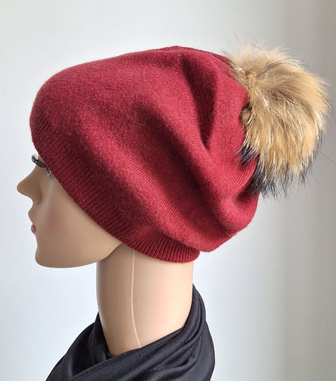 Strickmütze dunkelrot, mit Kaschmir und Angora