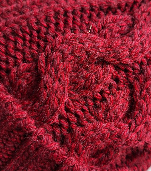 Strickpudel, dunkelrot Zopfmuster, Wolle