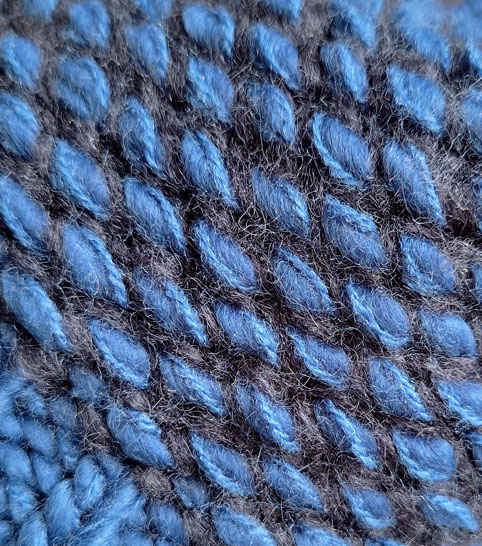 Weicher Strickpudel in schwarz/blau mit Fleecefutter.